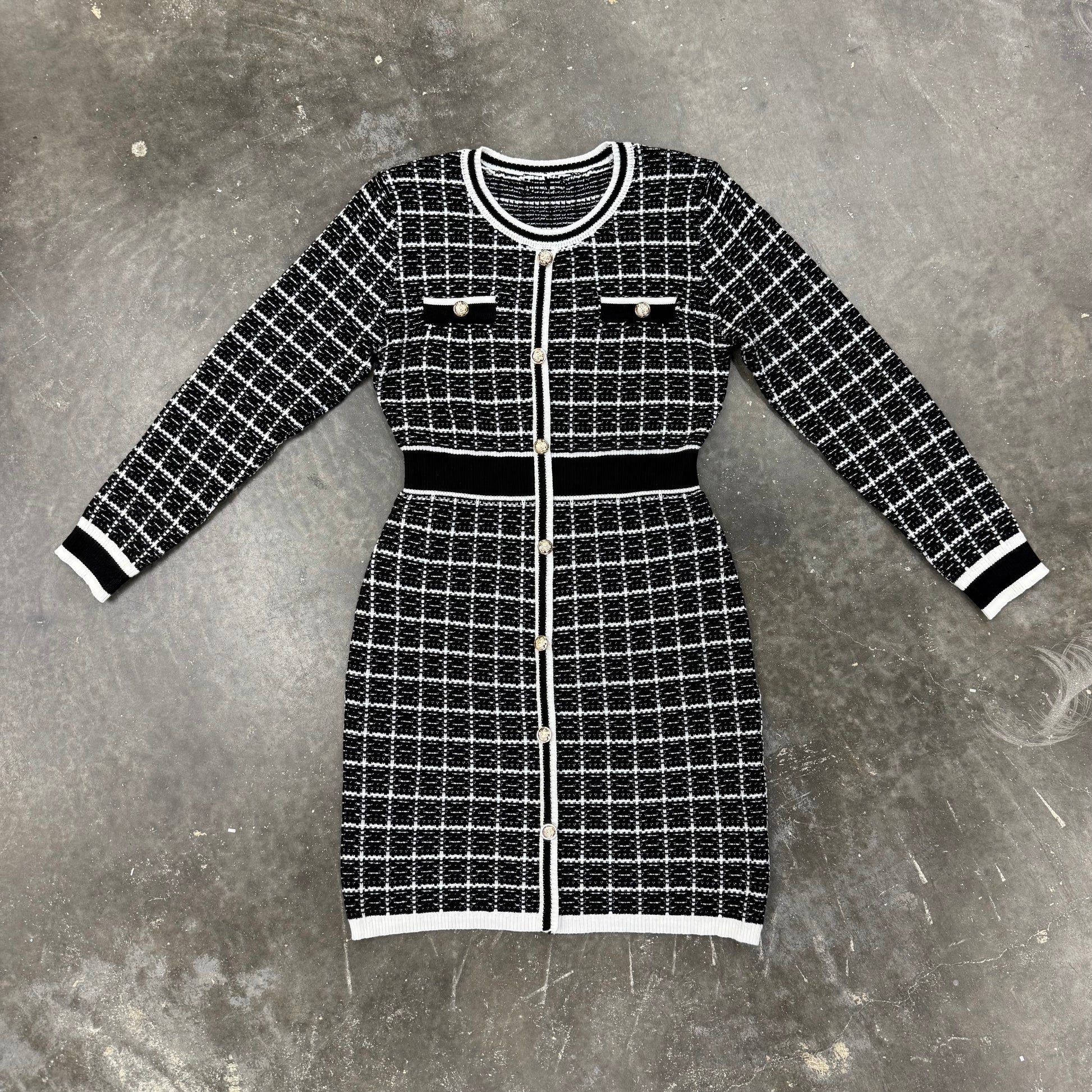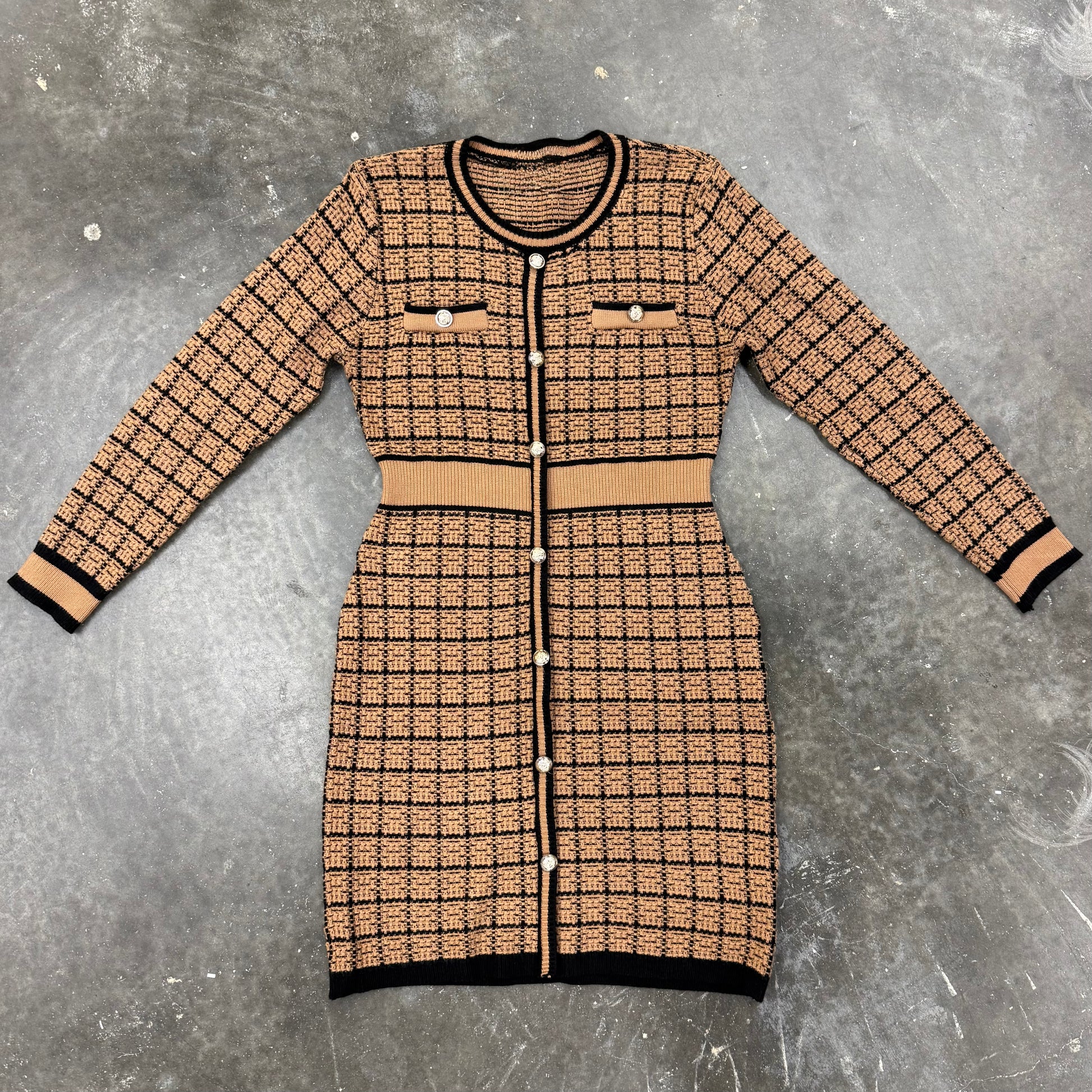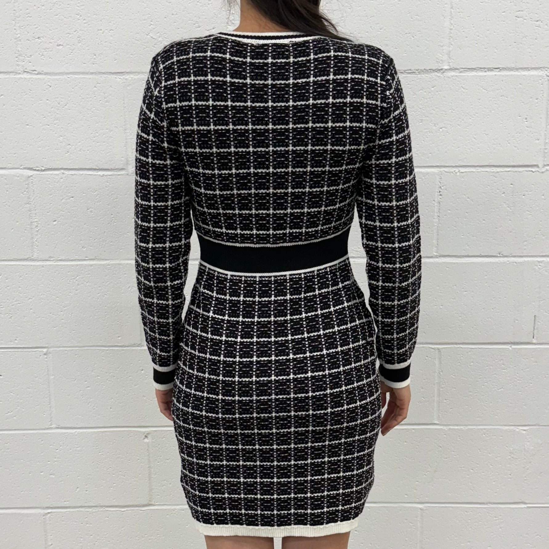 This knit long sleeve V5859 dress offers chic and elegant style while being practical for daily wear. With a mid-length design and long sleeves, it provides coverage and versatility, making it a staple piece in any wardrobe. Elevate your fashion game with this must-have dress.