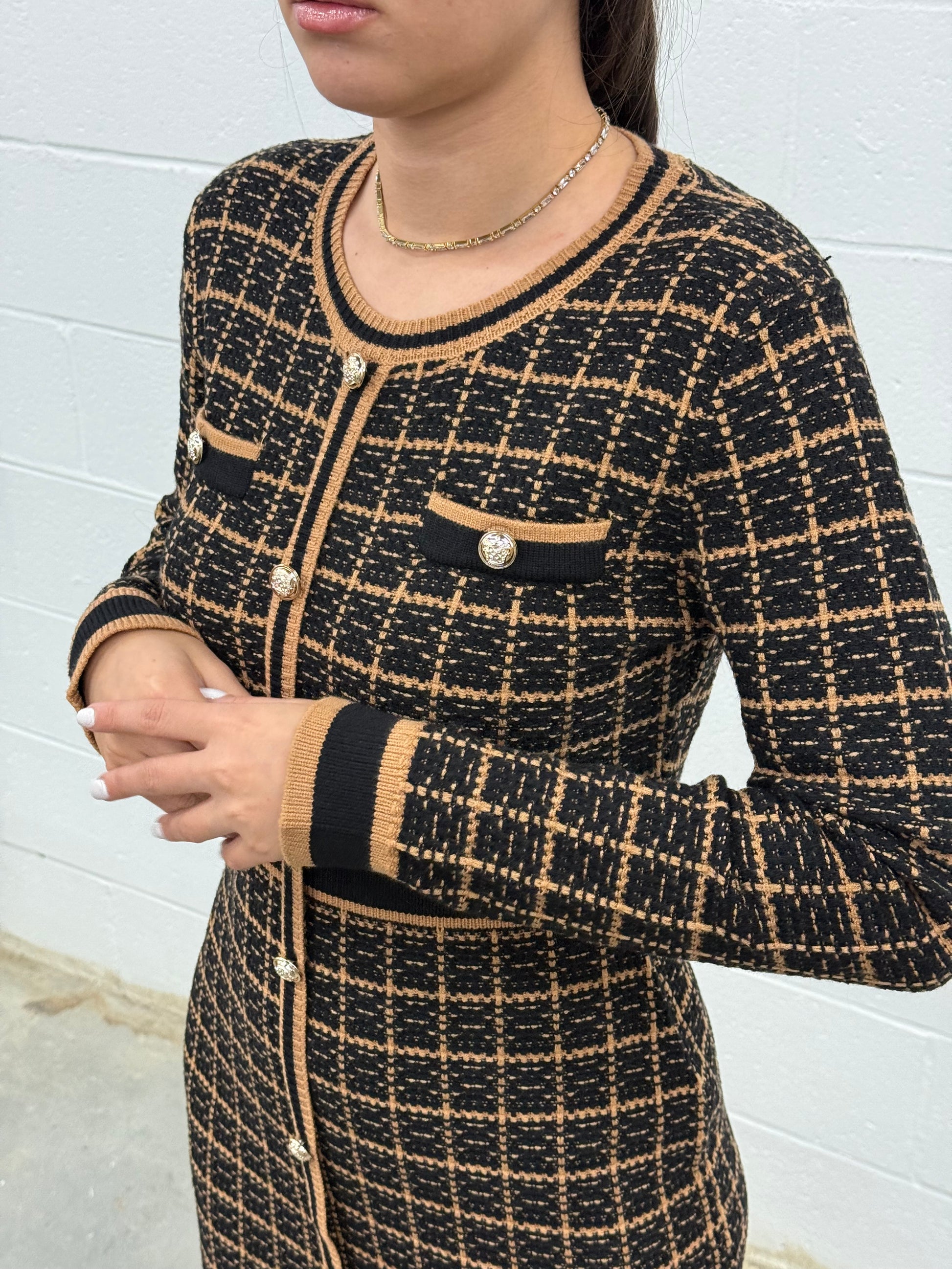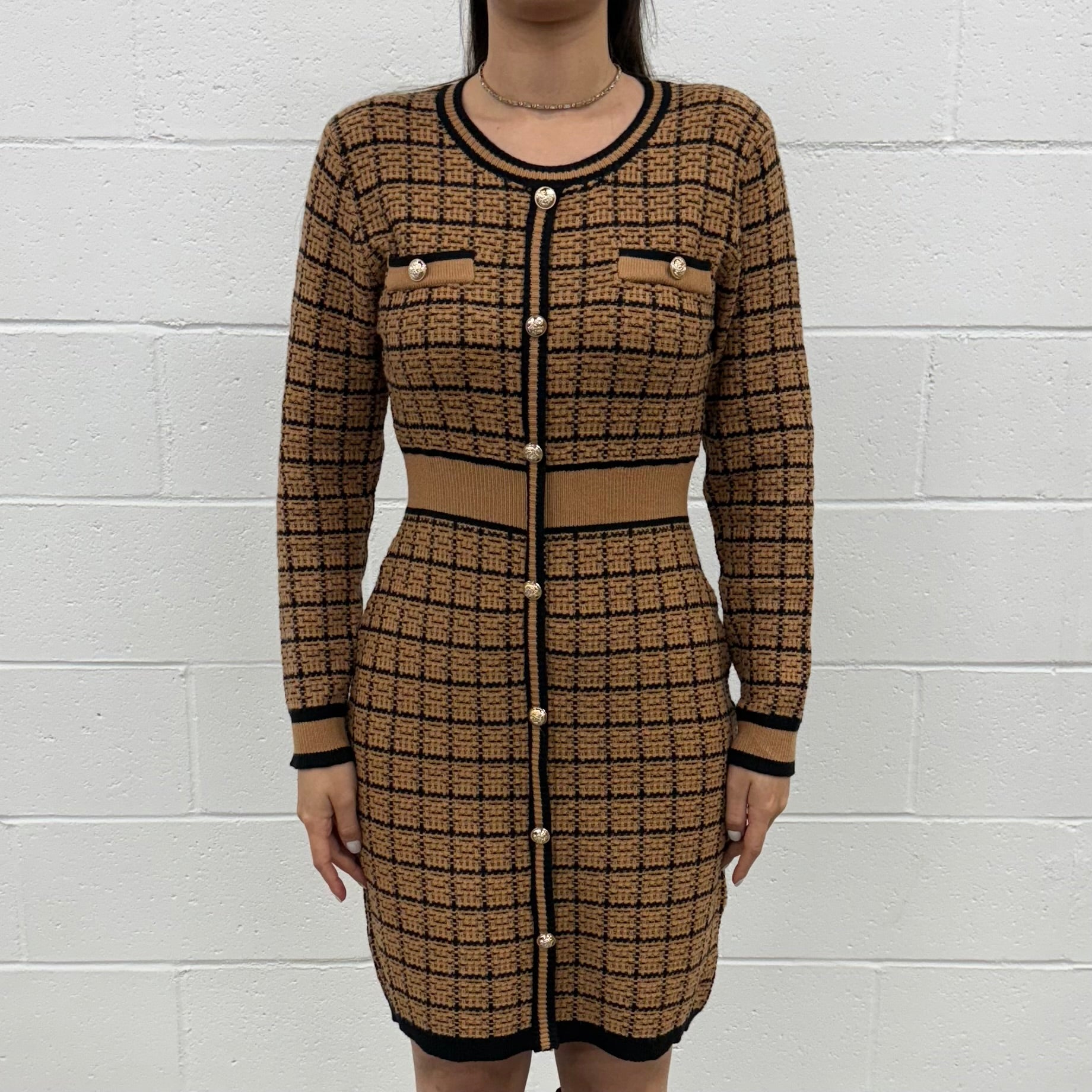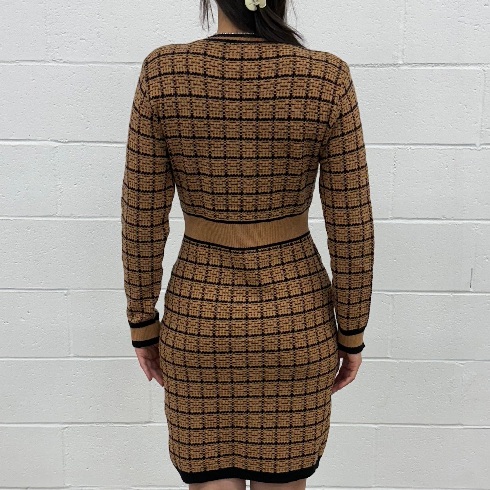 This knit long sleeve V5859 dress offers chic and elegant style while being practical for daily wear. With a mid-length design and long sleeves, it provides coverage and versatility, making it a staple piece in any wardrobe. Elevate your fashion game with this must-have dress.