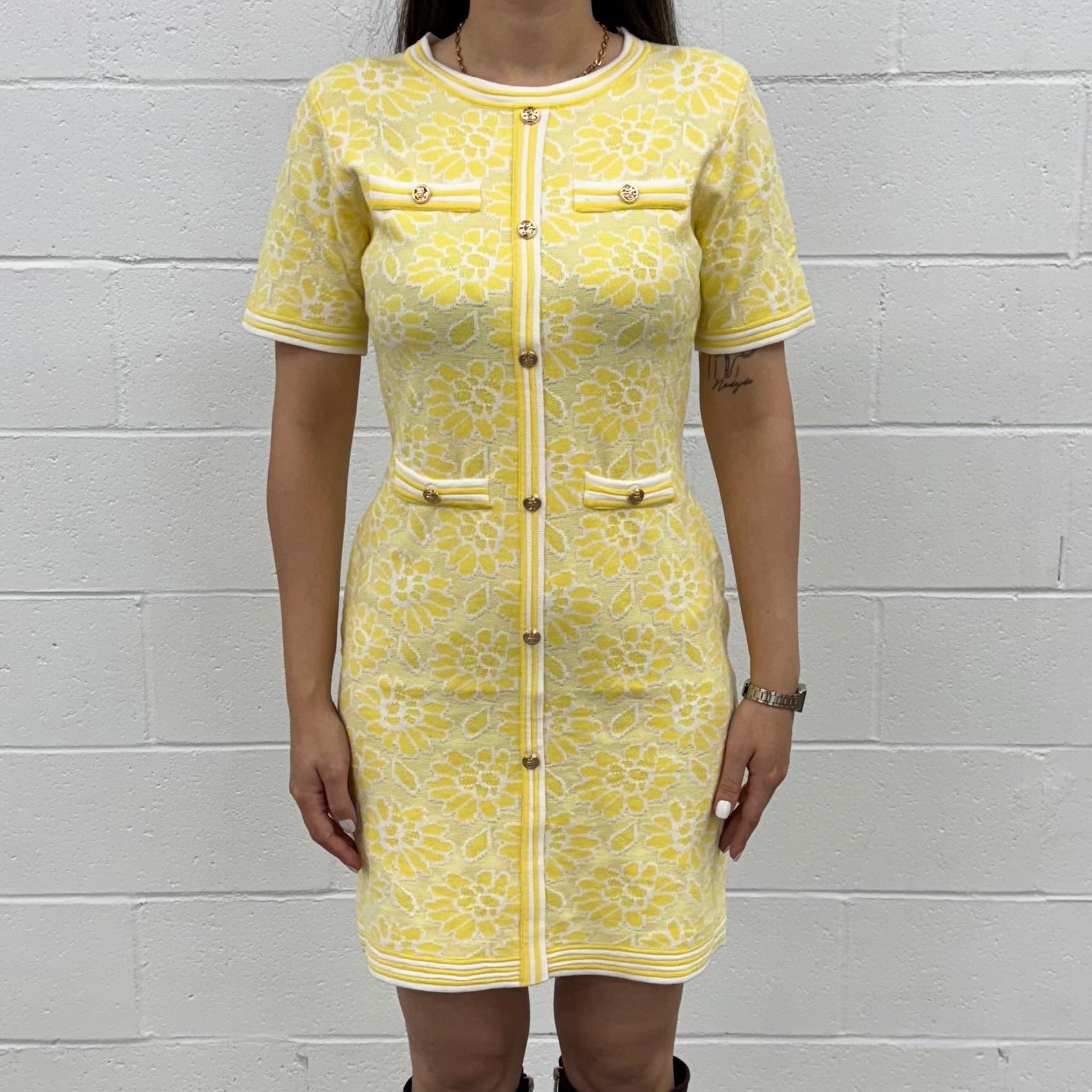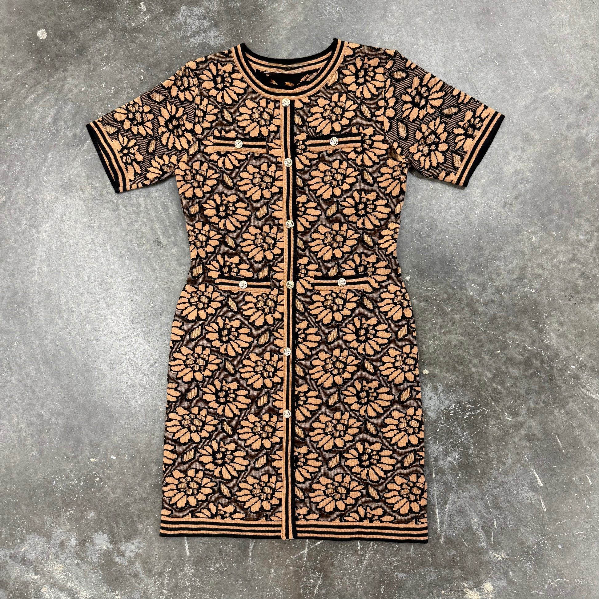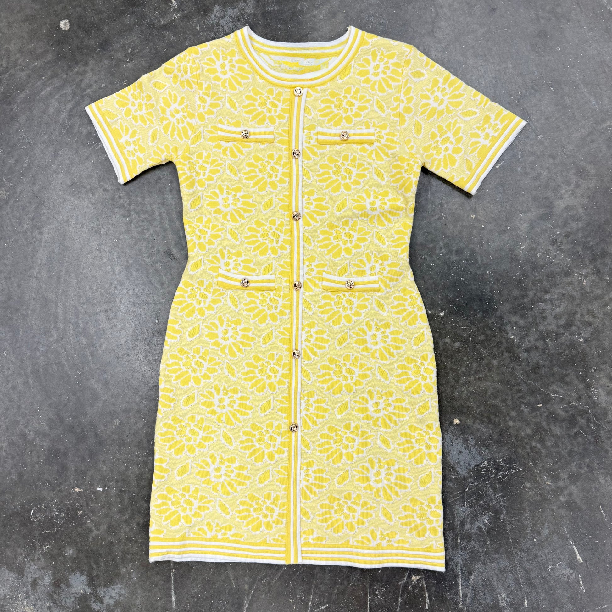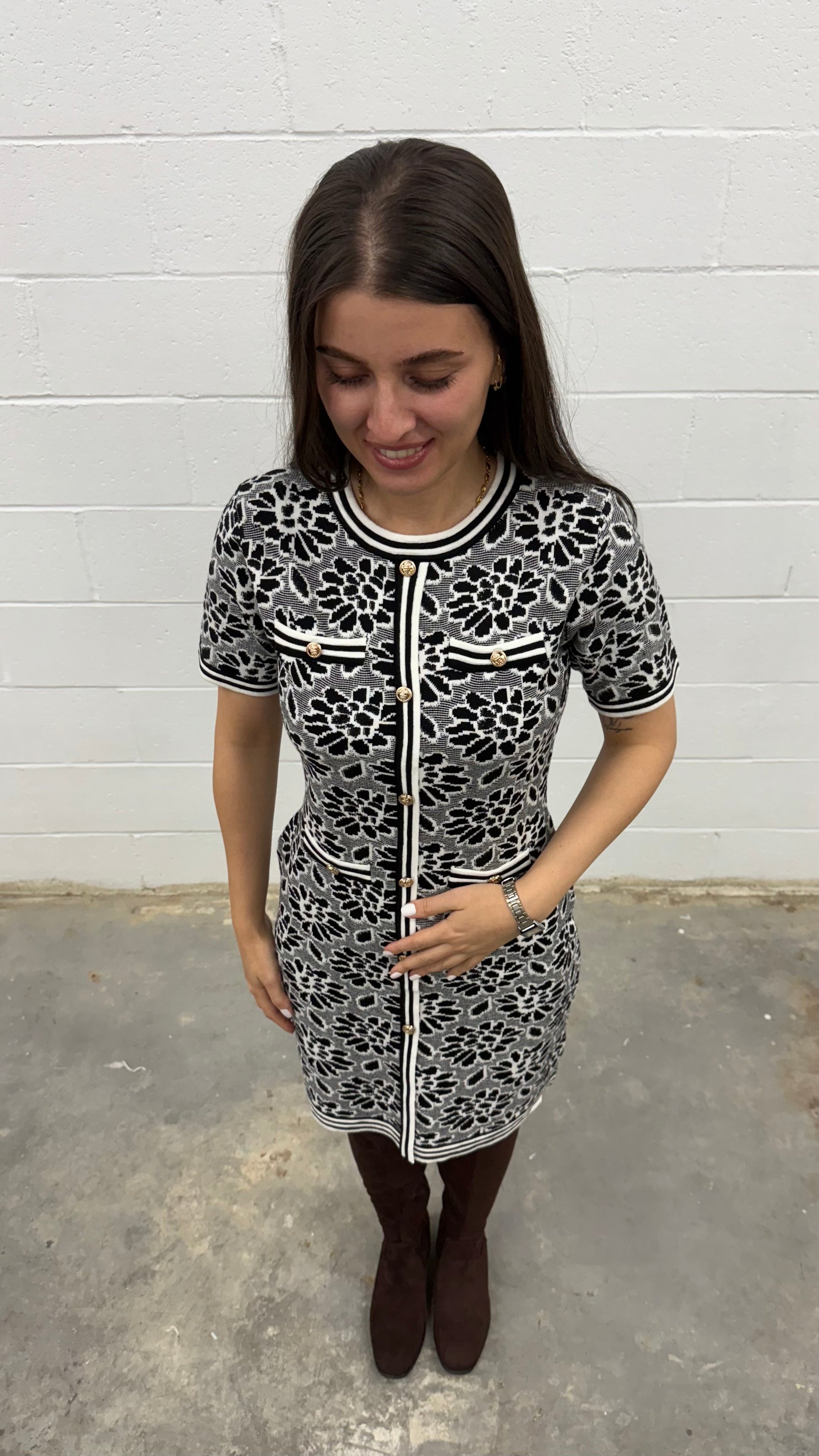 Expertly crafted for chic and elegant women, the Knit Dress Short Sleeve V5855 combines button details with delicate flower knitting for a sophisticated and versatile look. Perfect for daily wear, this dress is a must-have addition to your wardrobe.