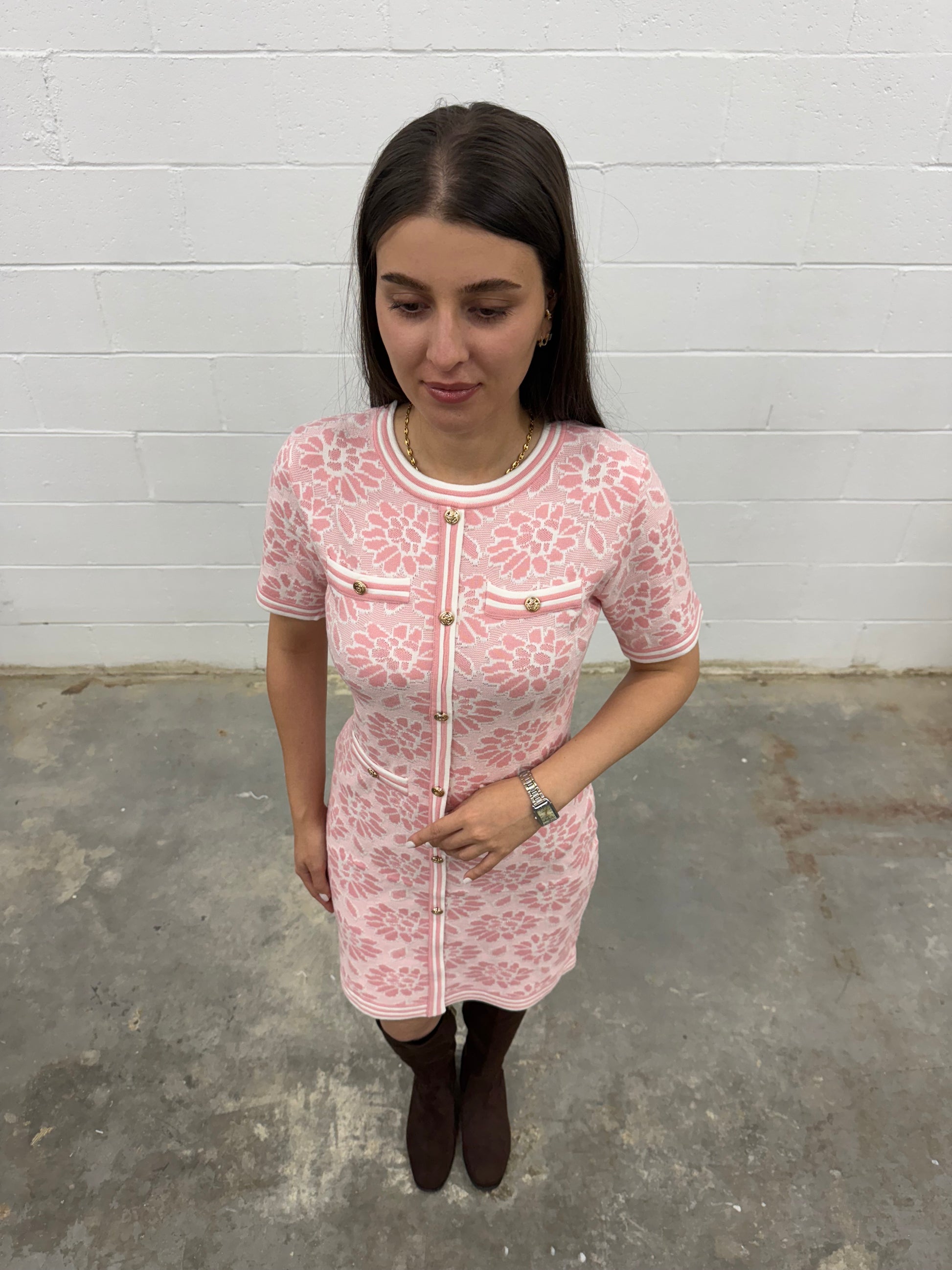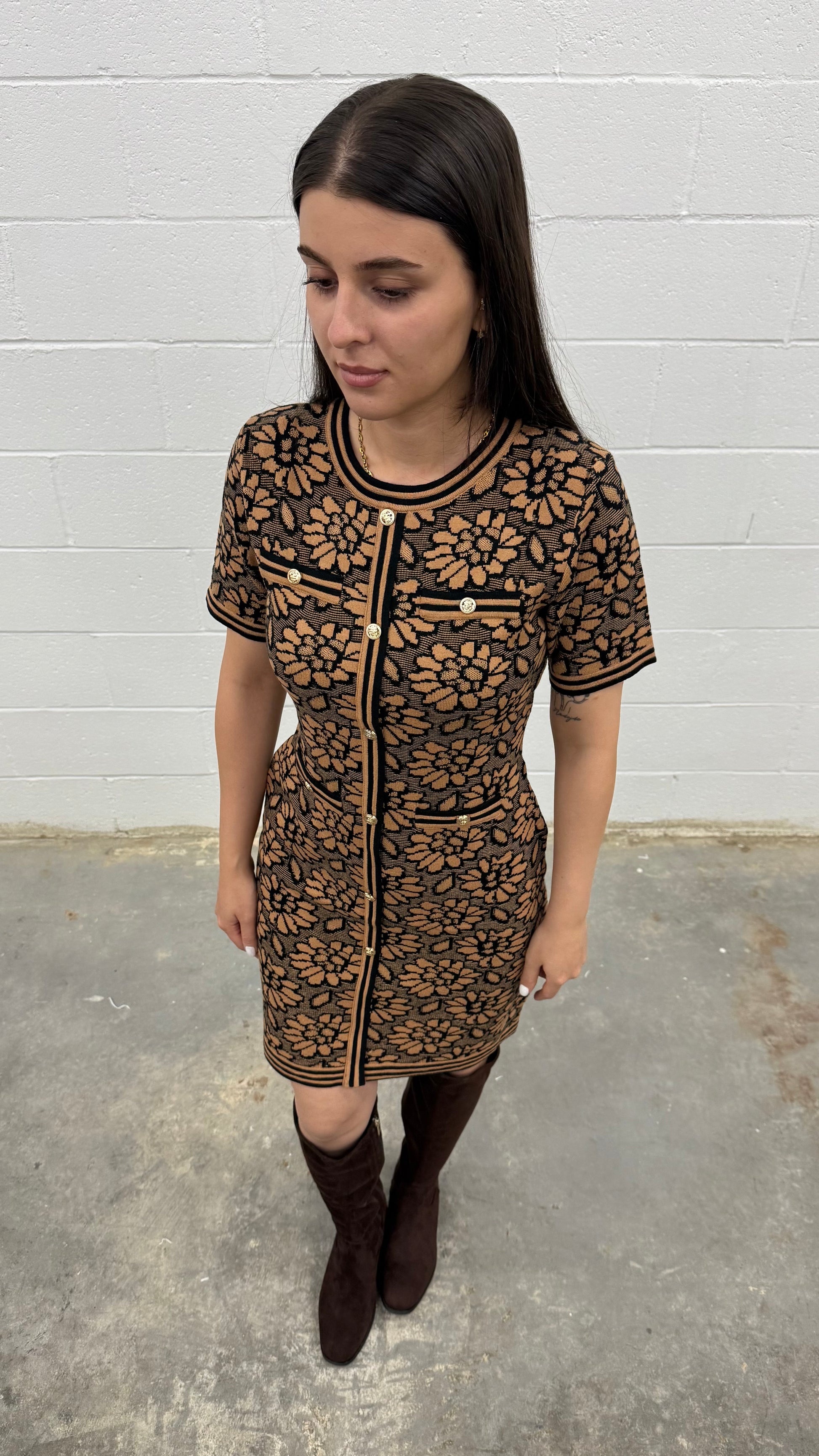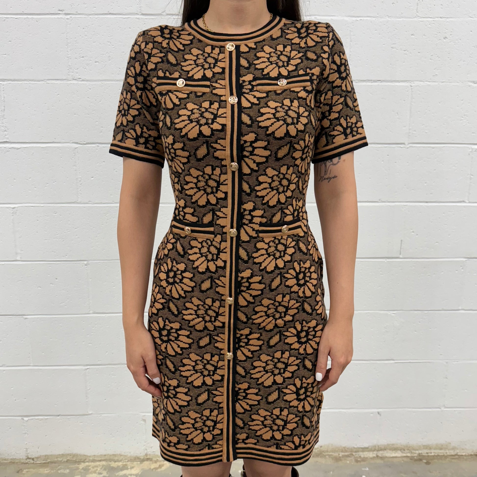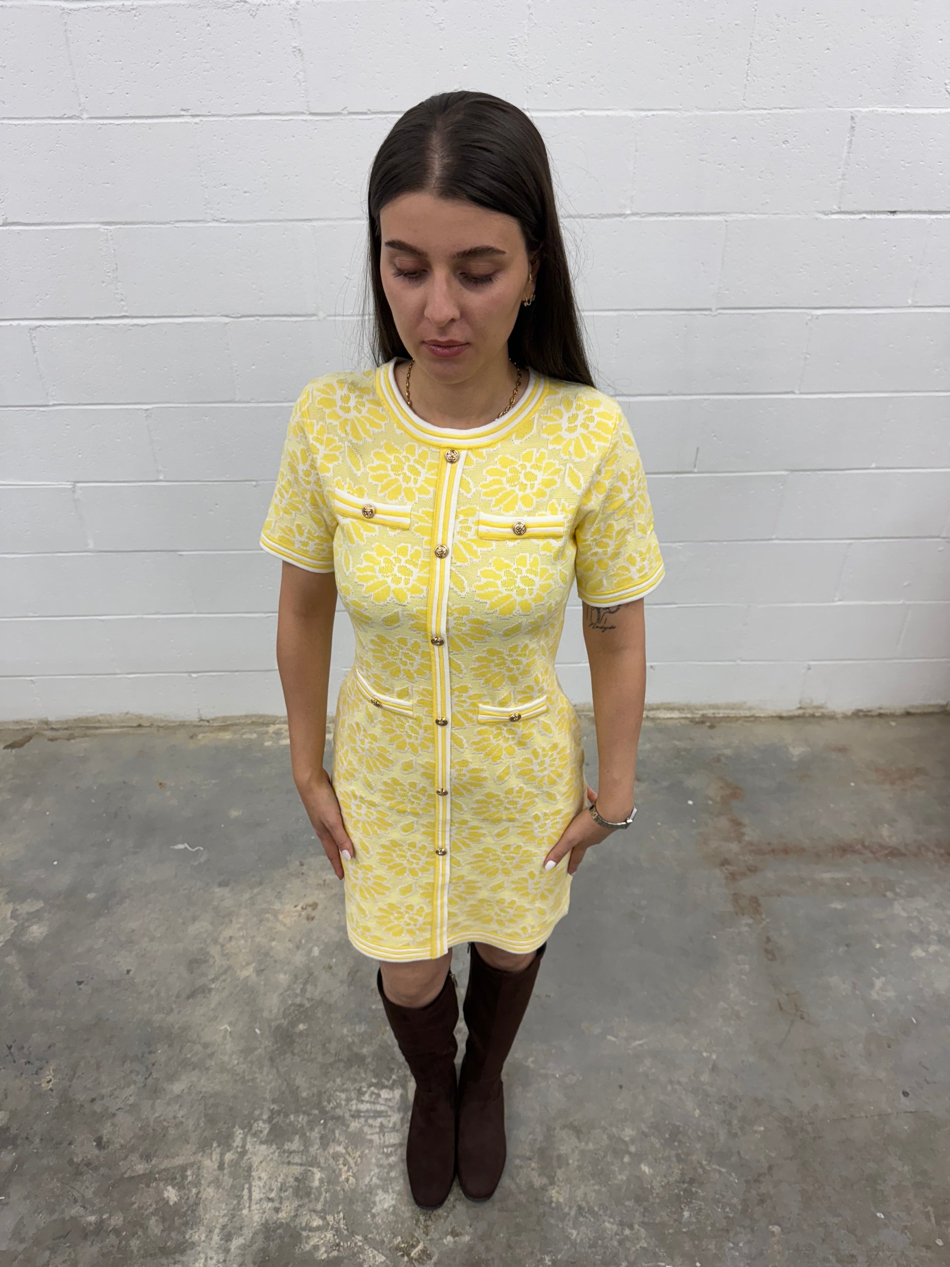 Expertly crafted for chic and elegant women, the Knit Dress Short Sleeve V5855 combines button details with delicate flower knitting for a sophisticated and versatile look. Perfect for daily wear, this dress is a must-have addition to your wardrobe.