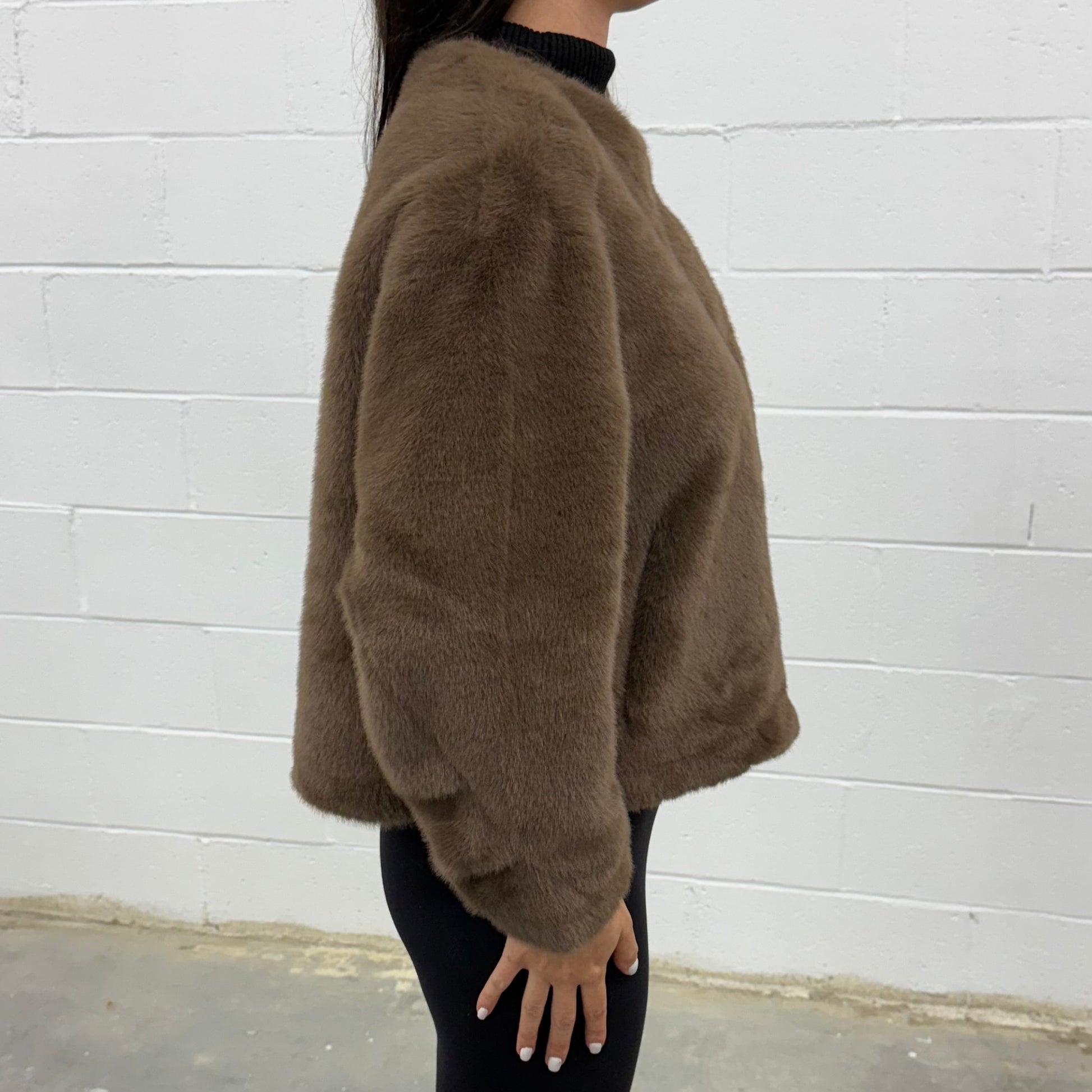 Elevate your winter style with this luxuriously soft faux-fur coat — the perfect blend of warmth and sophistication. Designed with a clean, collarless silhouette and a hidden front closure, this cozy piece drapes effortlessly for a refined yet modern look. The plush texture feels velvety to the touch, while the relaxed fit makes it ideal for layering over your favorite turtlenecks or evening outfits. Functional side pockets add both comfort and practicality. Available in timeless shades of Beige, Brown, and Black, this chic faux fur coat is a must-have for any cold-weather wardrobe.